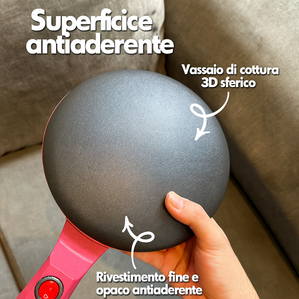 Sì! La piastra ha un rivestimento fine e opaco antiaderente che evita che l’impasto si attacchi. Le crêpe si staccano da sole senza spatole né fatica.