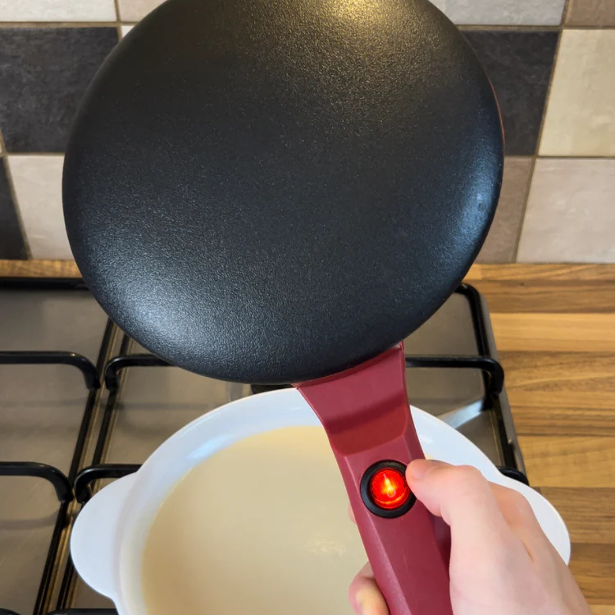 Basta accendere l’interruttore, aspettare pochi secondi che la piastra raggiunga la temperatura, immergerla nella pastella e sollevare: la crêpe si cuoce da sola in modo uniforme.